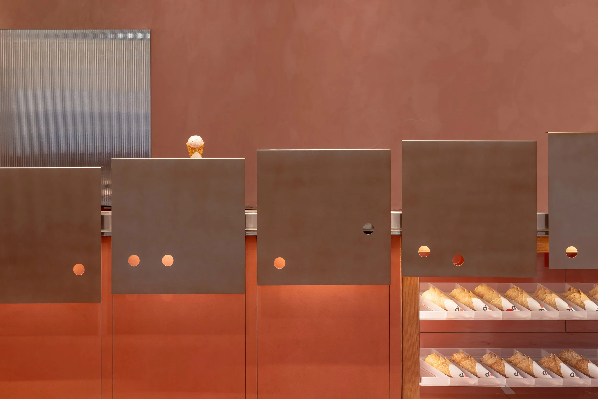 Our playful interior design identity for the new dessert brand is intended to spark whimsy, entice passersby, and elevate the simple joy of ice cream.