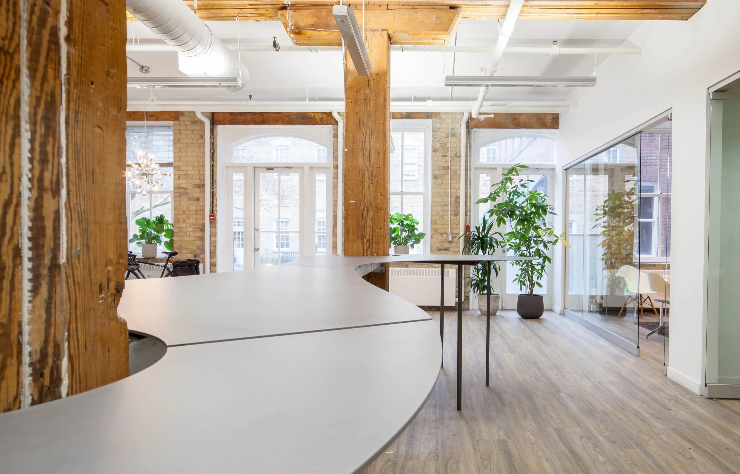 A custom steel table anchors our redesign of a busy law office in the historic Berkeley Castle, offering a dynamic hearth around which to gather.