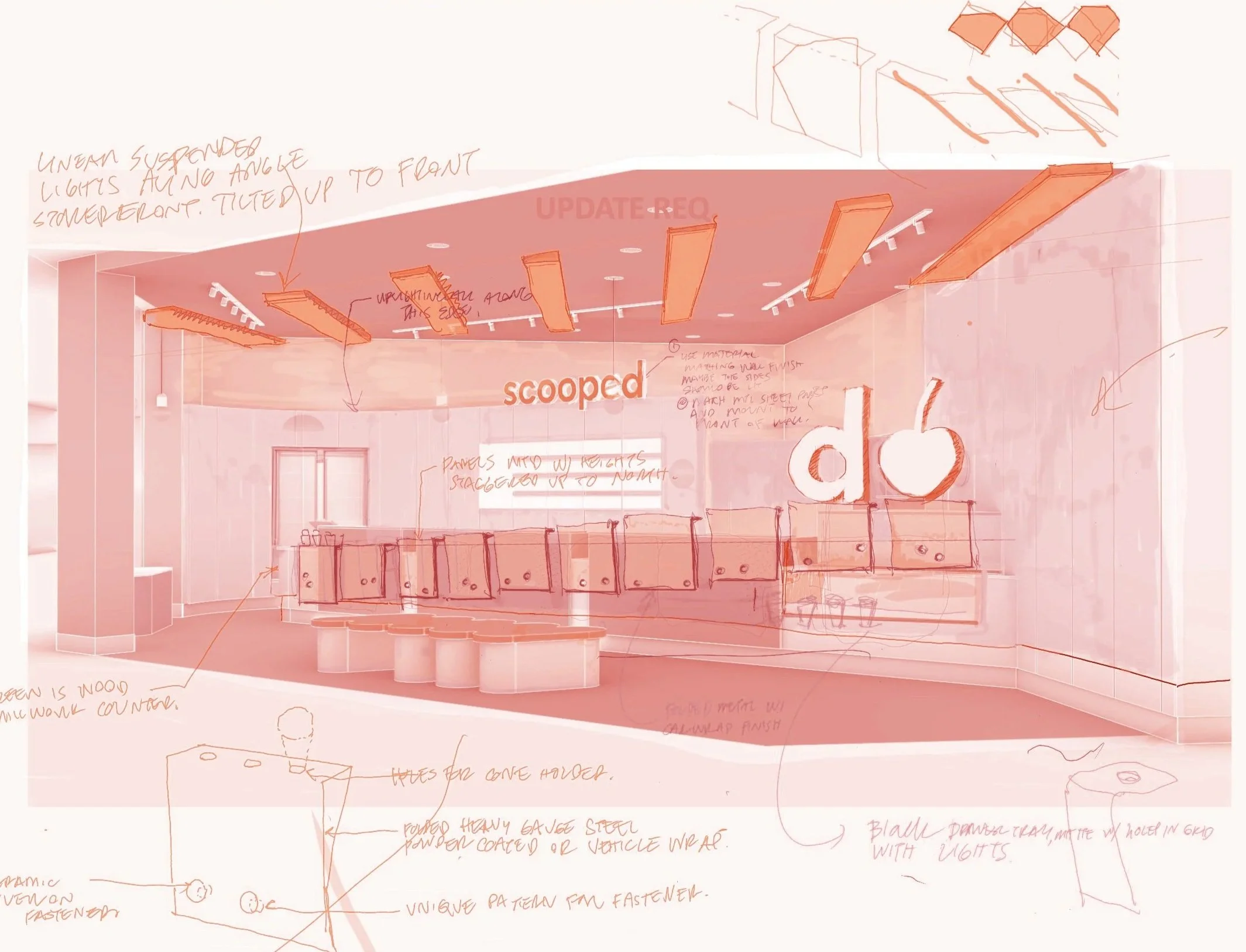Kilogram was tasked with creating a signature look and feel for our client’s new ice cream brand by developing a strong interior design identity for Scooped’s first location in a major shopping centre.