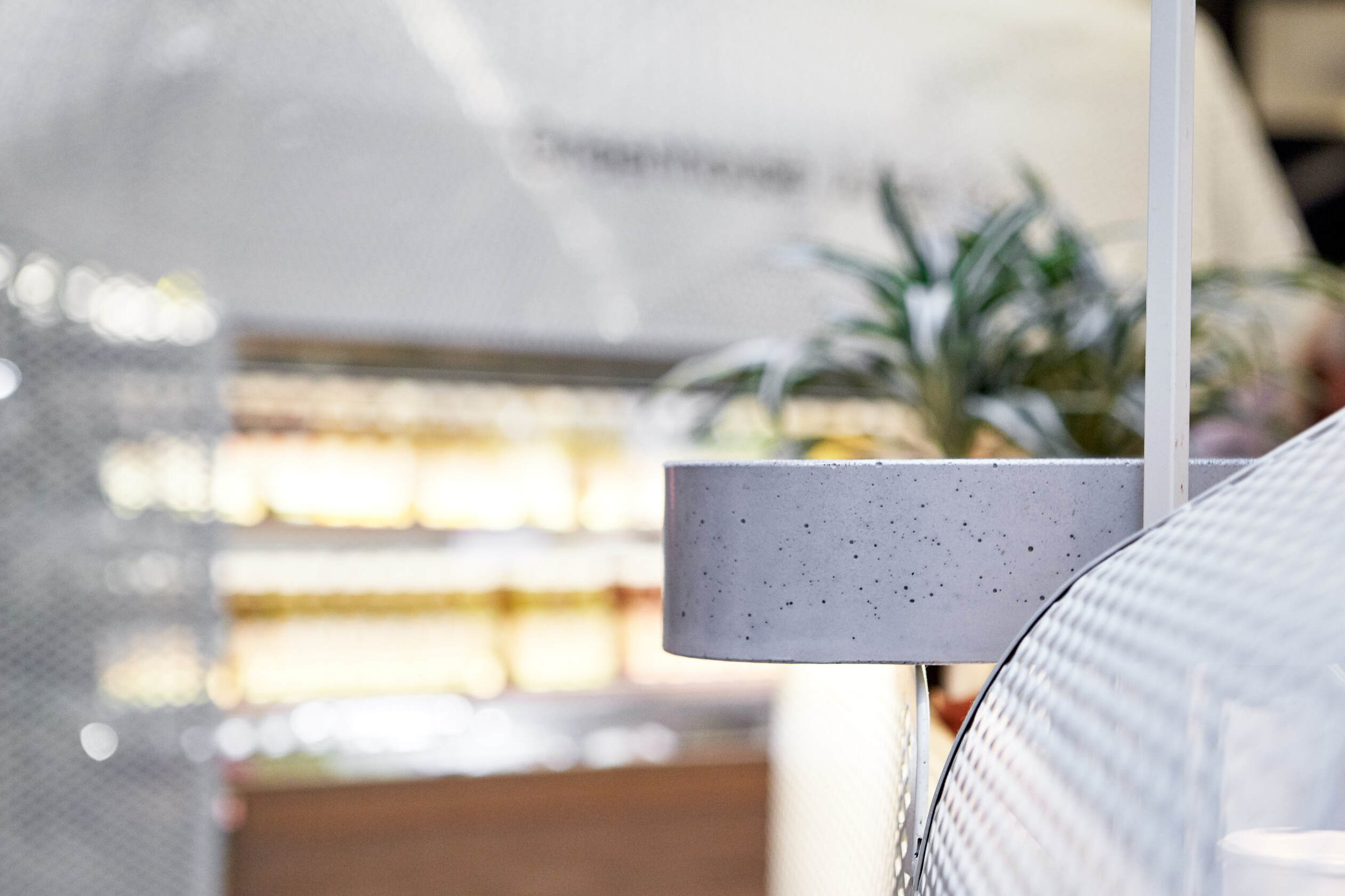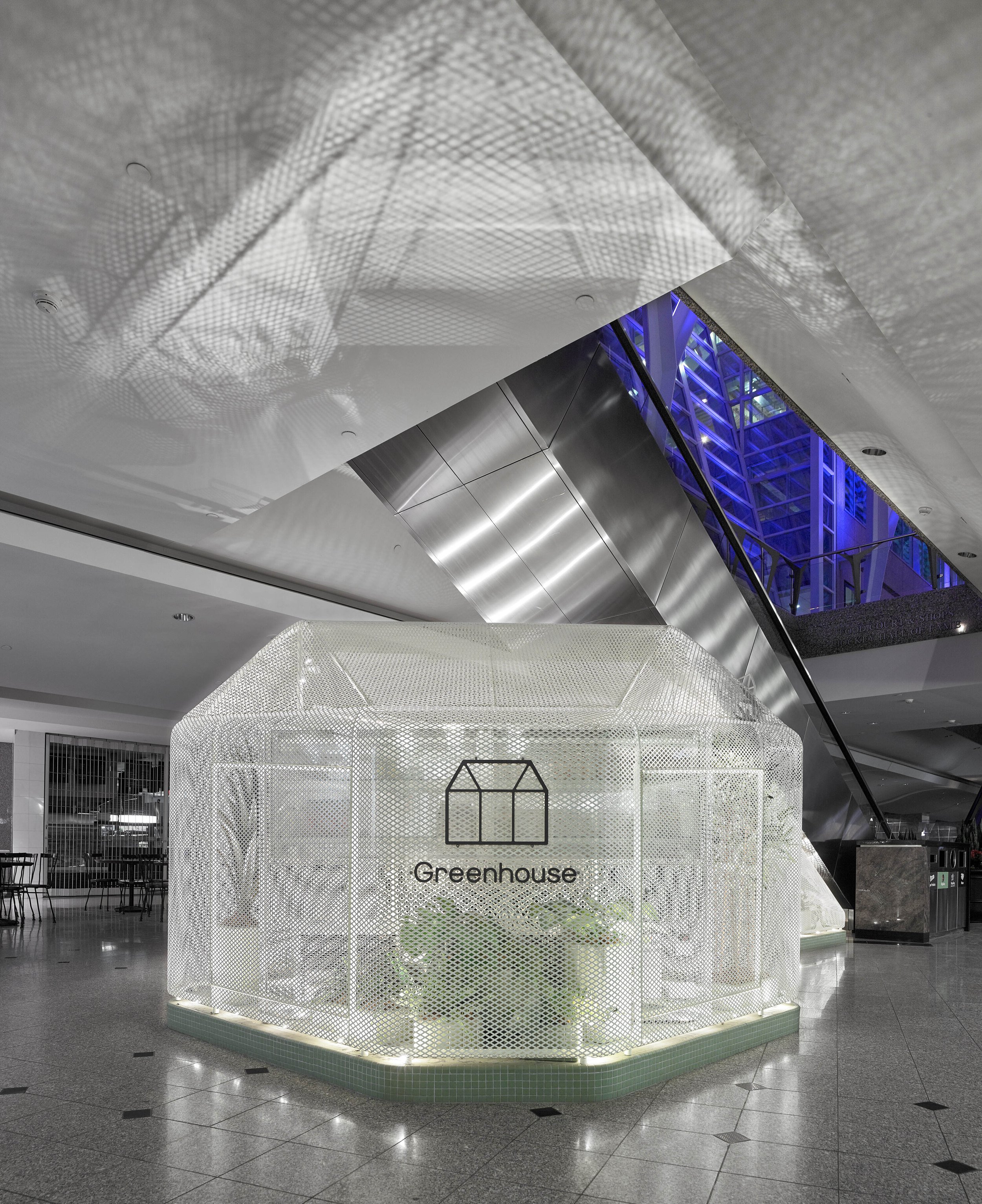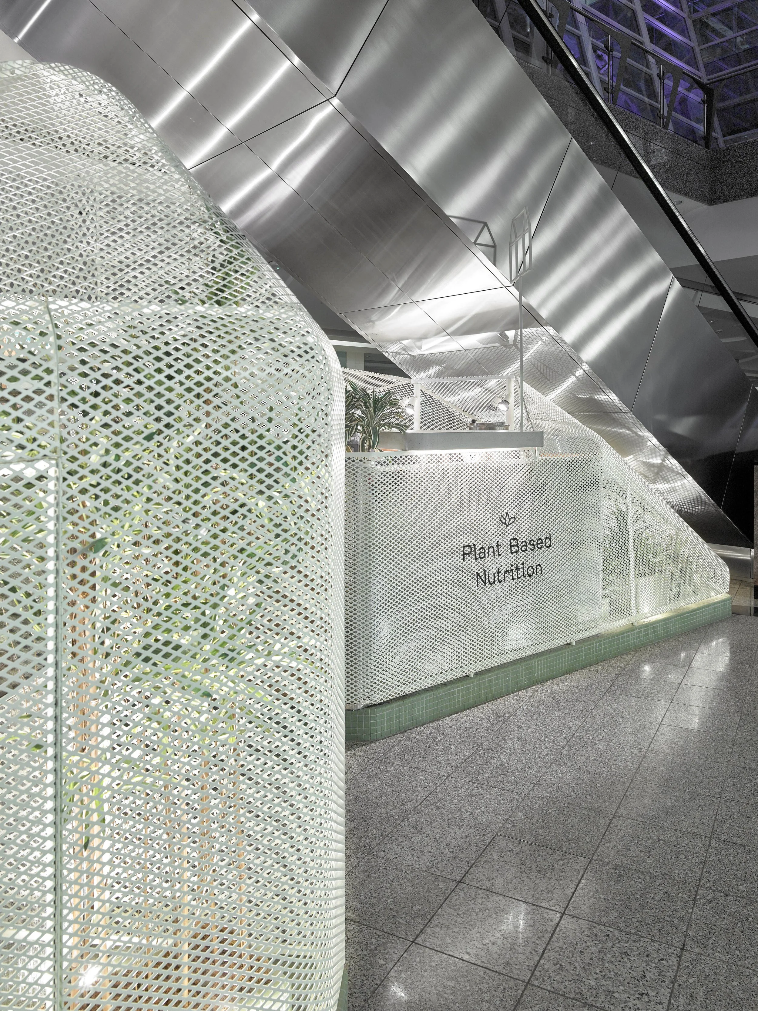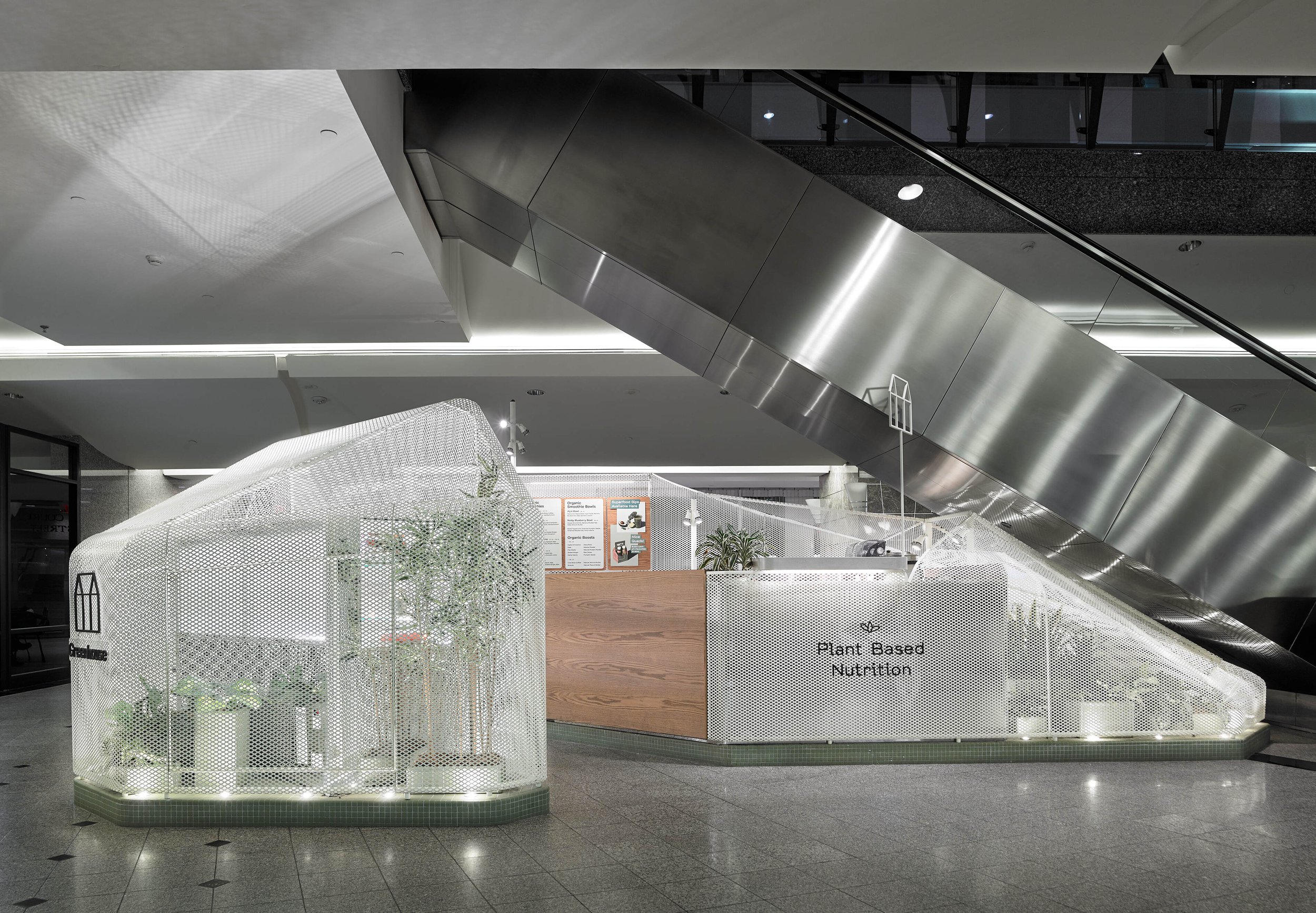 This juicery kiosk is composed of two shimmering, rock-like forms anchored to the lower level of Brookfield Place, an iconic business centre in downtown Toronto. Split Rock’s faceted geometry responds to its tight proximity to the escalator, ensuring 360-degree visibility and accommodating the site’s organic pedestrian flow. Wrapped in diamond-patterned steel mesh above colourful platforms, the illuminated architectures reflect in the mirrored escalator, becoming a glowing beacon within the concourse.