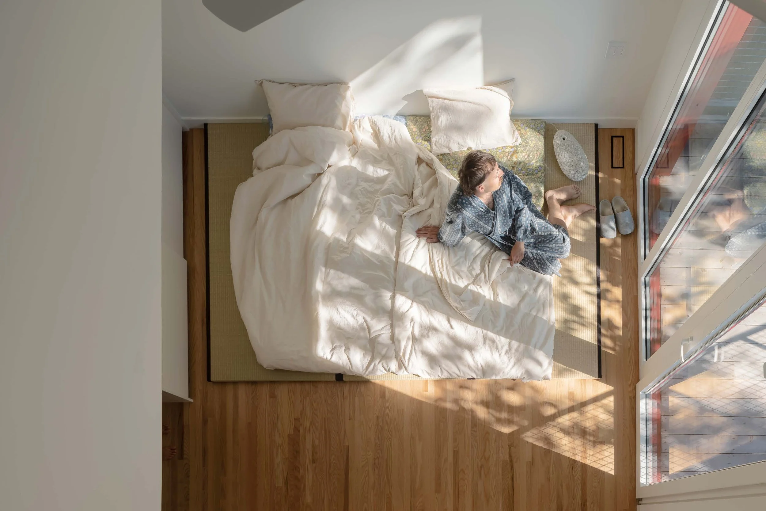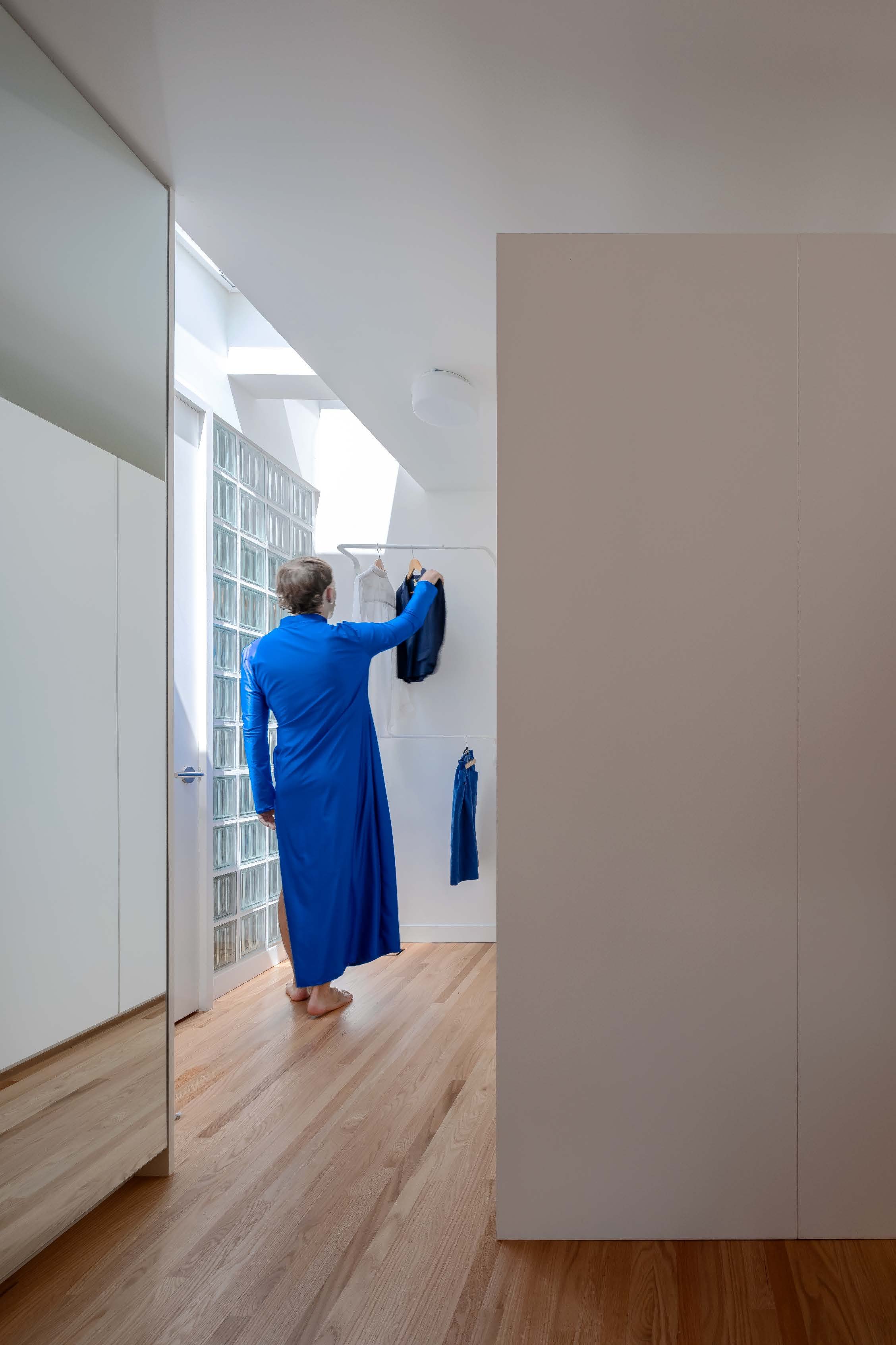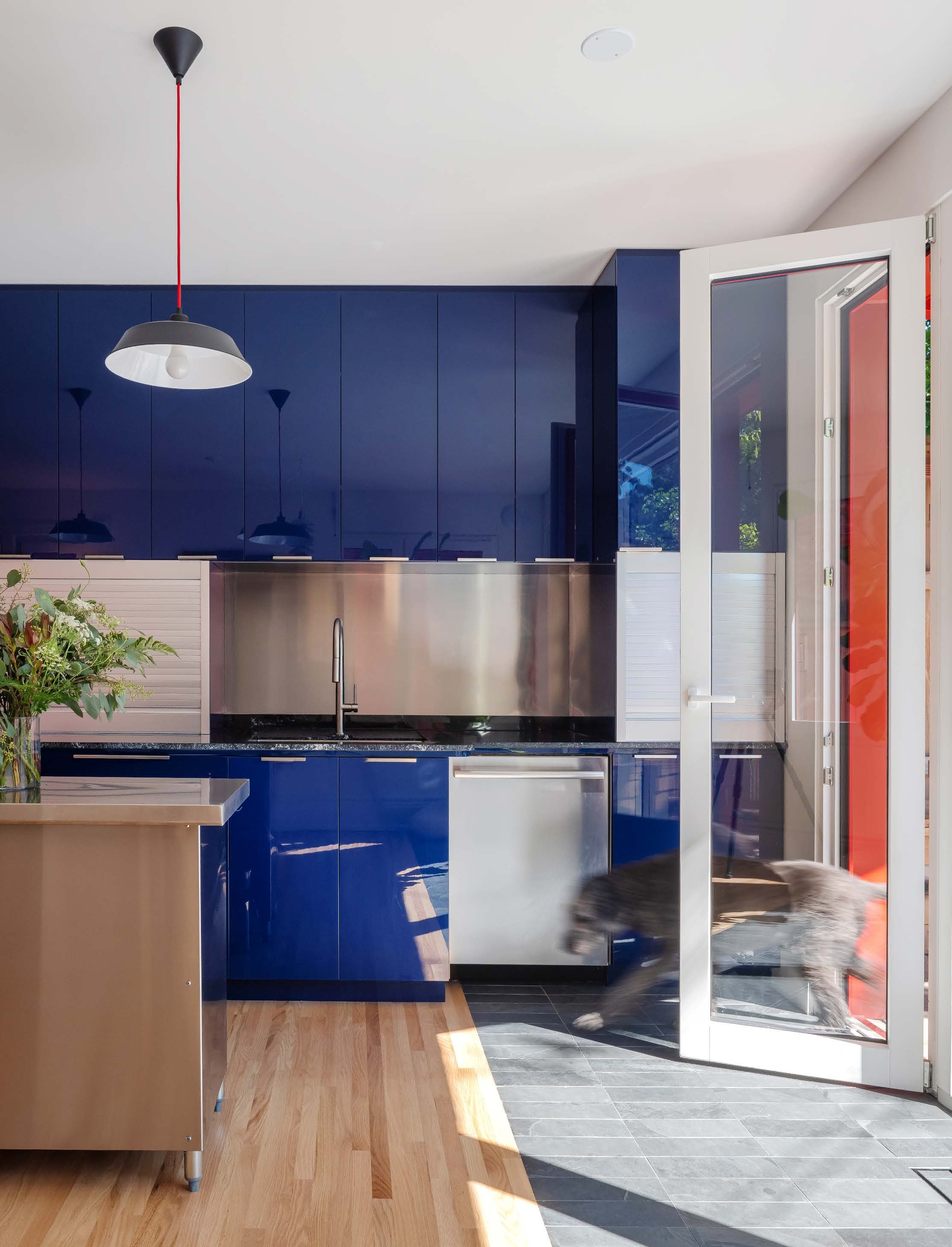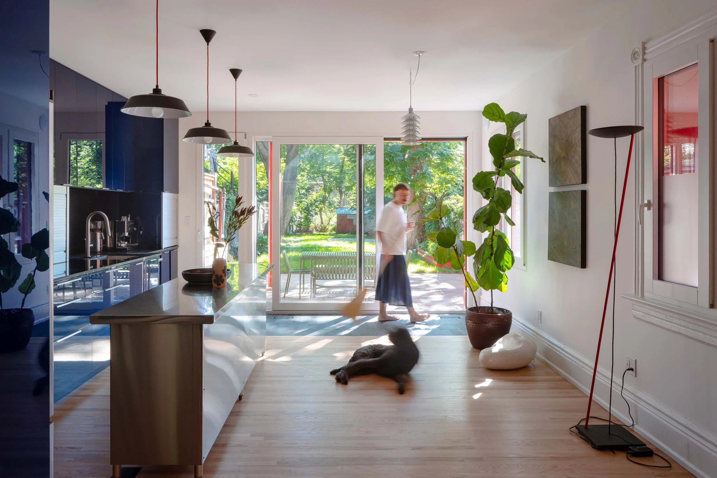 Glimmer House explores how a home can adapt to different definitions of family, designed for a couple, their large dog, and frequent long-term guests. The vibrant addition playfully reinterprets local Victorian masonry and provides an abundance of glimmering light through large apertures and its angular form. The home’s dark, glossy kitchen reflects outdoor vistas, and a tranquil, grotto-like bathroom opens to the tree canopy — interventions which balance the home’s opportunities for social connection, solitude, and communion with nature.