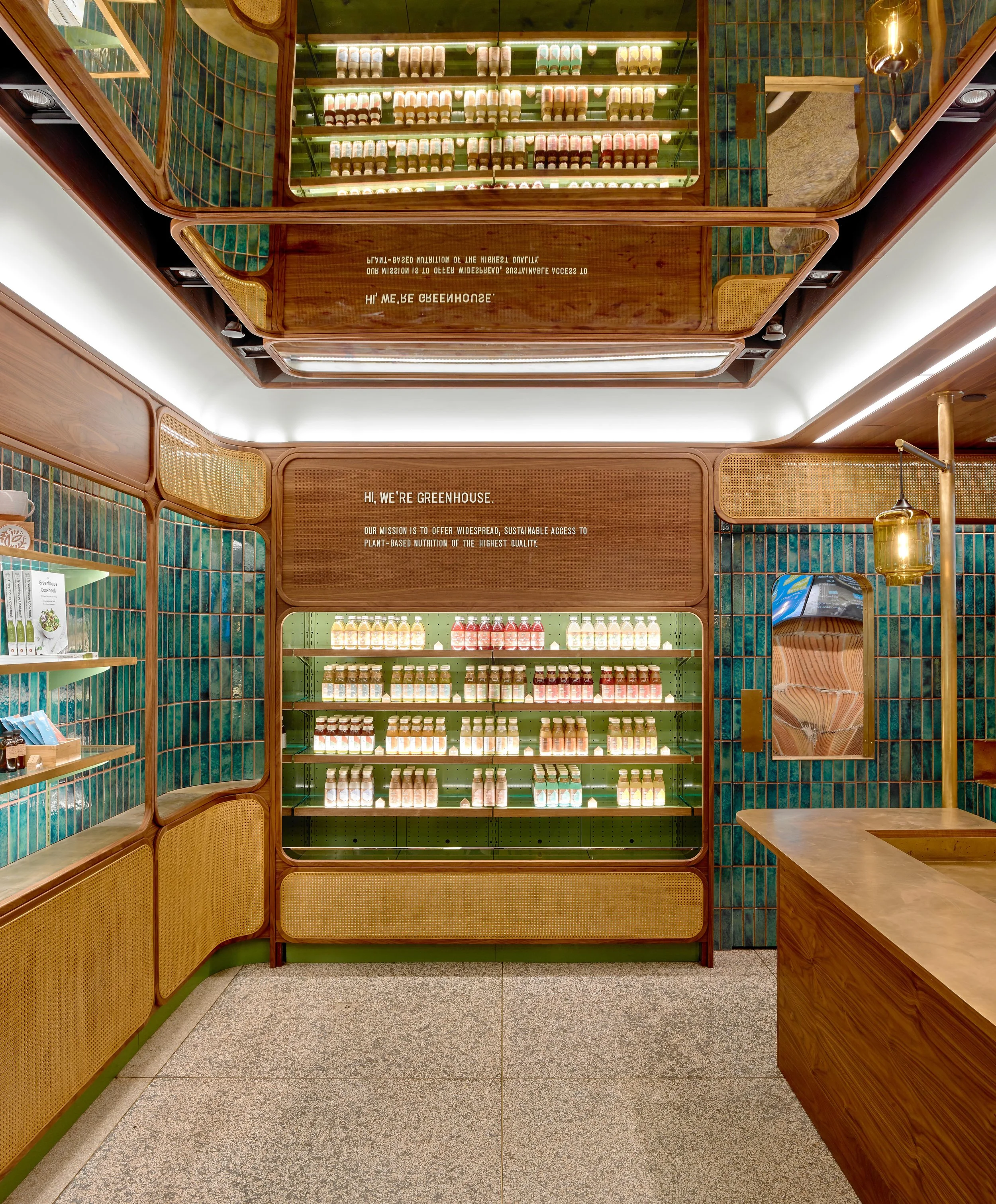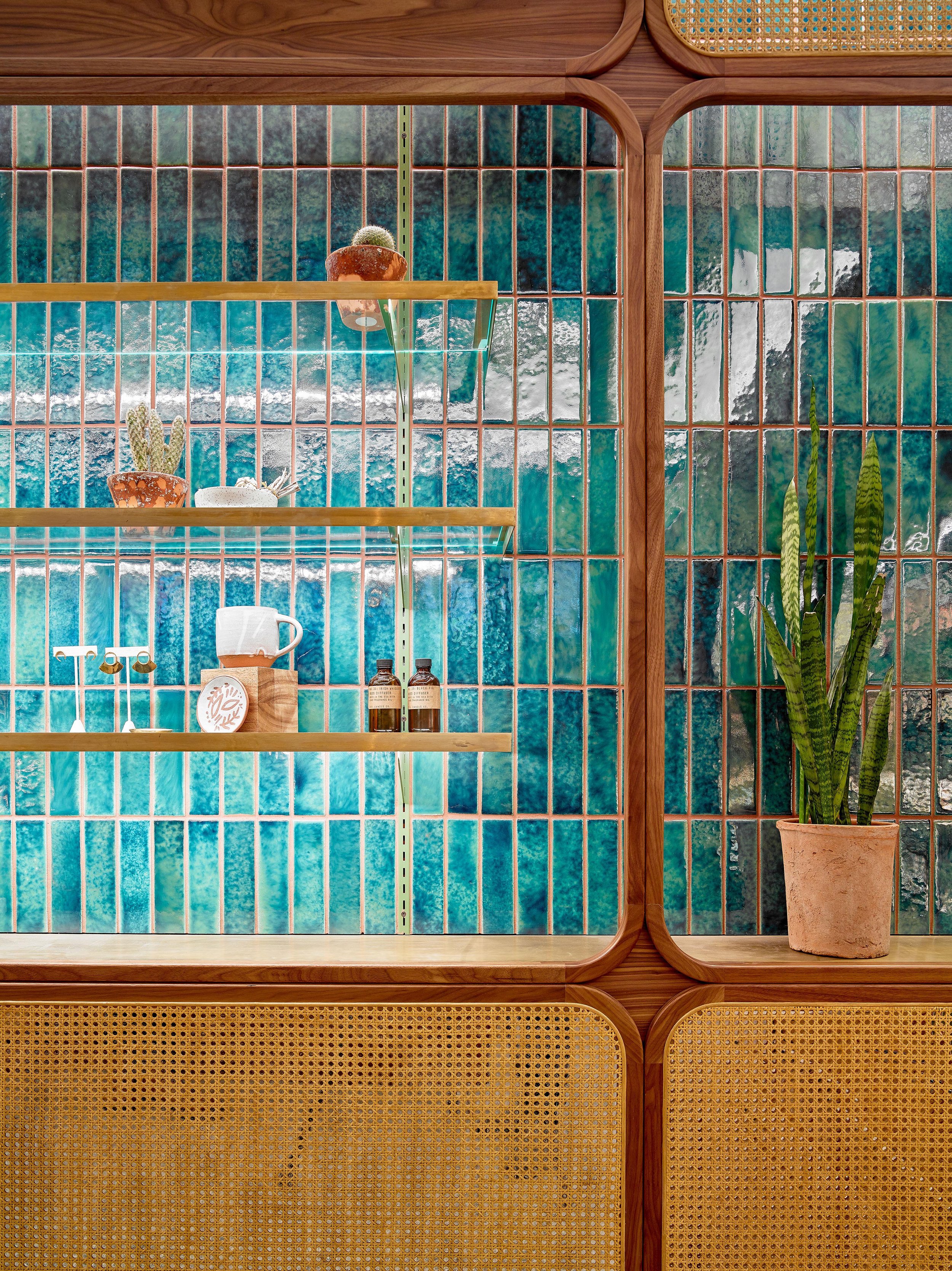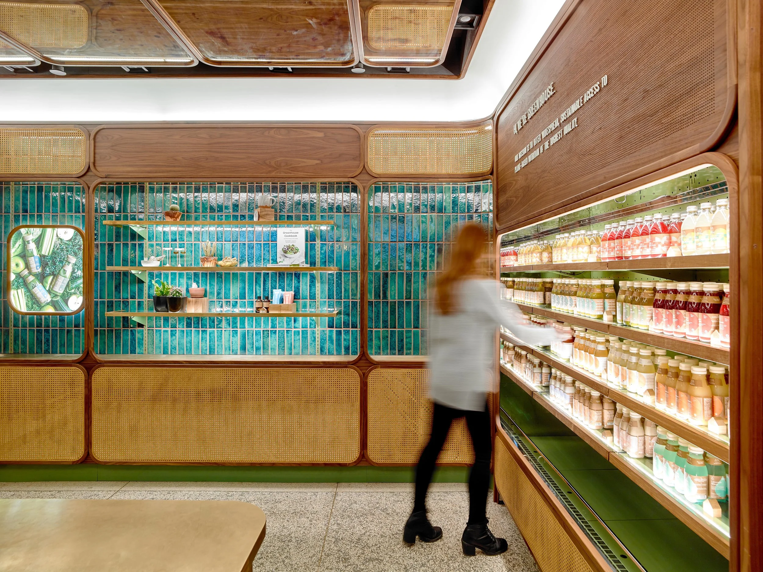 A compact juicery for travellers on the go, Valise celebrates the enduring elegance of Toronto’s Union Station. Inspired by the interiors of vintage train cars, the space is wrapped in a custom curved walnut and cane panelling system, subtly emphasised by soft integrated lighting. We exposed segments of the original terracotta wall and incorporated brass detailing for countertops and display shelves — gentle homages to the Beaux Arts railway station and its incredible design legacy.